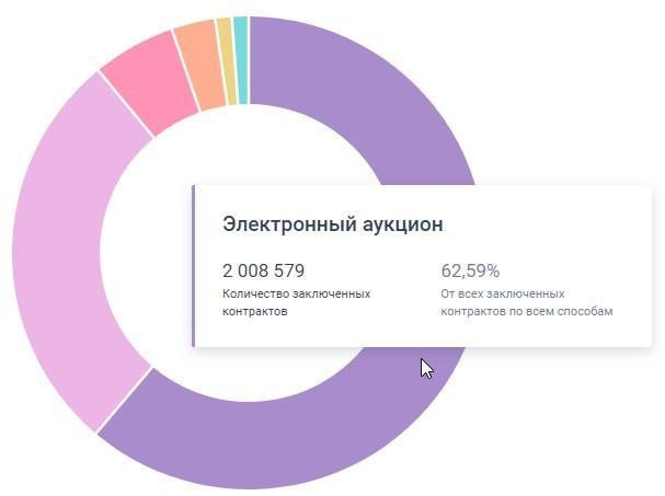 На сегодняшний день самой распространённой формой торгов проводимых госзаказчиками является электронный аукцион. Именно на его долю за весь 2022 год пришлось 62,59% всех закупок.